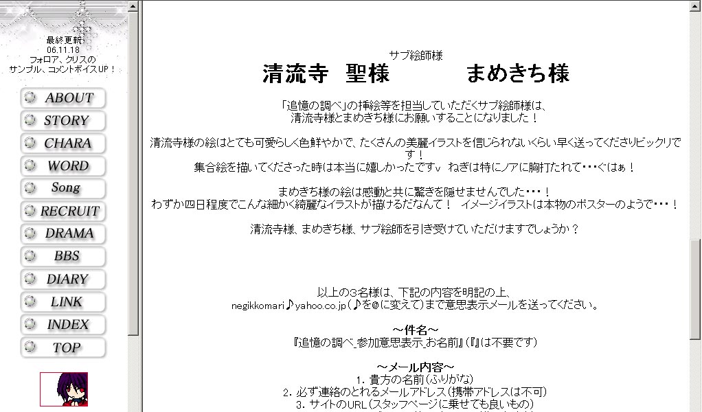 十一月二十七日のらんなっぷはい9に向け新作情報とか追加してますので、アドレス請求されている方はご確認下さい。